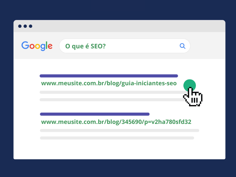 Rankeamento no Google (SEO): Os mecanismos de busca usam a URL como um dos muitos sinais para entender o conteúdo de uma página. Palavras-chave relevantes presentes na URL (como “bolo-de-chocolate”) ajudam o Google a contextualizar sua página e a classificá-la para as buscas certas.